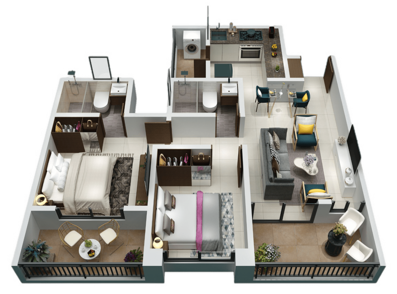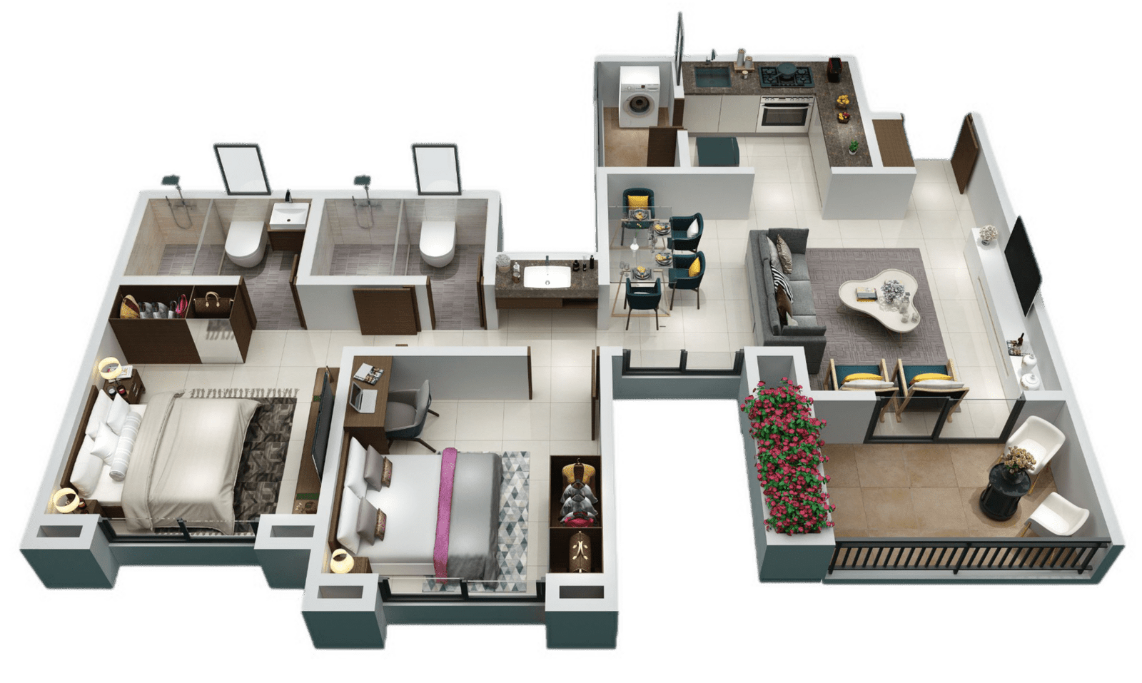 Indulge in the luxury of spacious 2BHK homes, ranging from 765 – 790 sq.ft. These generously designed residences offer ample room for comfortable modern living.